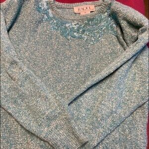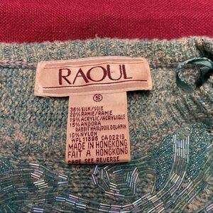 RAOUL Vintage 80s beaded suit in aqua. Beading embellishments sparkle. Snazzy.