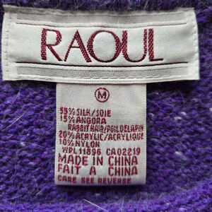Material: 55% Silk, 15% Angora (Rabbit Hair), 20% Acrylic, 10% Nylon