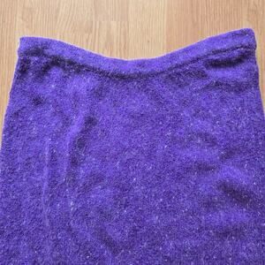 RAOUL Vintage 90s Women Knit Midi Skirt M Purple Fuzzy Silk Angora Blend Soft Stretch