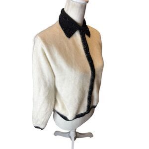 RAPHELLA VINTAGE ANGORA HAIR And LAMBS WOOL BUTTON DOWN BEADED SWEATER SZ M