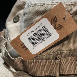 1- NEW RAPID DOMINANCE HAT, BEIGE WITH TAGS AND THROWING IN A OLD NAVY CAMO SCARF