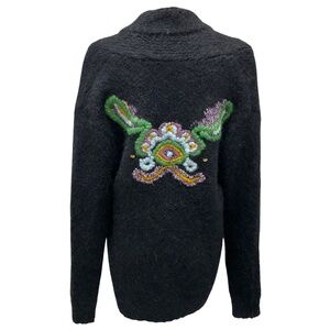 Raquel Allegra Black Handmade Alpaca Knit Shawl Cardigan