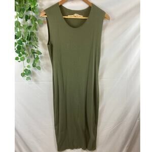 Army green cotton blend rib layering midi dress from Raquel Allegra featuring a round neck and a sleeveless design.