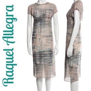 RAQUEL ALLEGRA SUNSET 100% SILK Midi Length Shift Dress, Size 1 (Small).