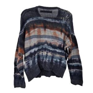 RAQUEL ALLERGRA SZ 2 MERINO WOOL CASHMERE DISTRESSED KNIT LONG SLEEVE SWEATER