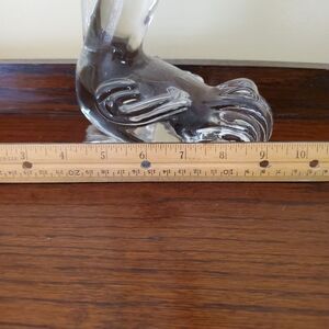 This is a vintage item and may show some signs of wear. This particular Pelican has one chip on the right corner of the foot. I have included a picture in the gallery. Someone who repairs glass may be able to smooth it slightly if desired. I chose to leave it.
