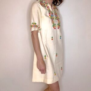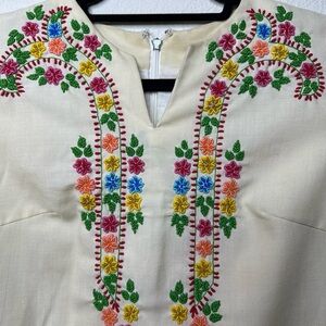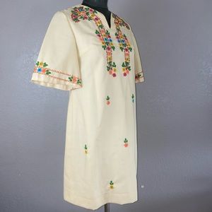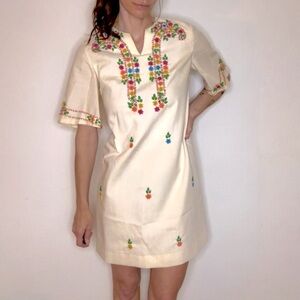 *RARE* 1960’s Vintage Star of Siam Boutique Handwoven Silk w/ 3D Flower Hand-Embroidery Mini Caftan Mod A-Line Dress
