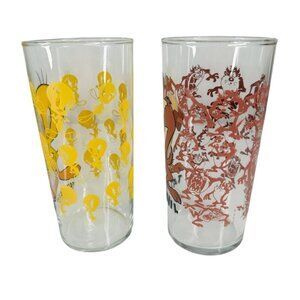 RARE 1995 Looney Tunes Taz Tasmanian Devil Tweety Warner Bros Glass Lot of 2
