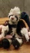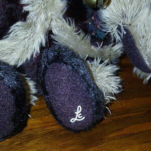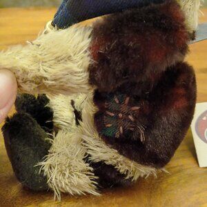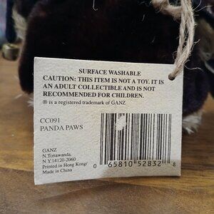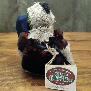 This adorable little fellow, "Panda Paws" by Ganz, is an artist designed Cottage Collectible by highly collected artist Lorraine Chien (CC091 1999). This sweet panda is retired and dressed in a deep wine colored suit, has a faux leather belt and a hat with a bell on the end. He is new with tags and a bobble head with metal joints at the arms and legs, so very floppy. He'll make a wonderful and rare addition to your collection!