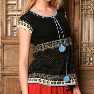 Rare 2000s Free People Birds Eye Babydoll Sweater With Pom Pom Drawstring as seen on Alex Russo (Selena Gomez) in Wizards of Waverly Place season 1 episode 6 (2007). Same style, brand and color. An absolute must-have for any Alex fan.