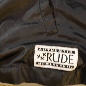 RARE 2000s Hot Topic RUDE Black Windbreaker Hood sz M CONDITION IN DESCRIPTION