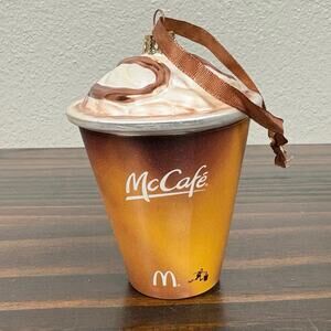 RARE 2010 McDonald’s Blown Glass McCafe Coffee Cup Christmas Ornament w/ Box.
