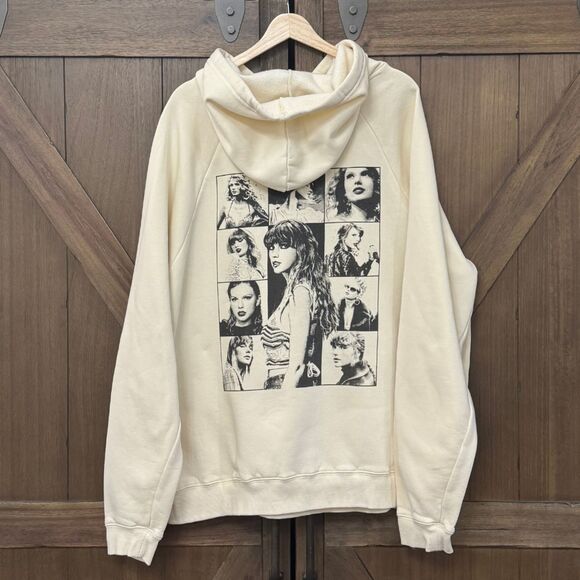 Venue exclusive and 100% authentic Taylor Swift The Eras Tour beige / cream color hoodie with black logo and black graphic print on the back. This version was only available for purchase at the venues on tour, it was not for sale on her site like the version with the color logo. This one is the version that is rare and hard to find!