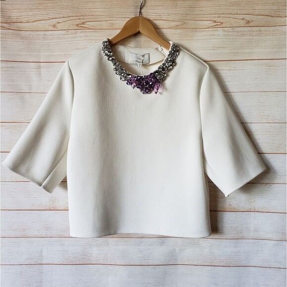 3.1 Phillip Lim Oversized Top Shirt with Encrusted Crystals Neckline Round Neck