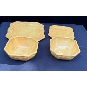 RARE 4 Highgate Manor Mustard Yellow China Plates 1 Dinner Plate 2 Bowls 1 Salad