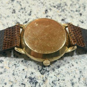 GREAT CONDITION - RARE 1950's Omega Bumper Automatic 14K Gold Filled Swiss 32.5mm Watch with aftermarket snake skin leather band.