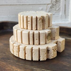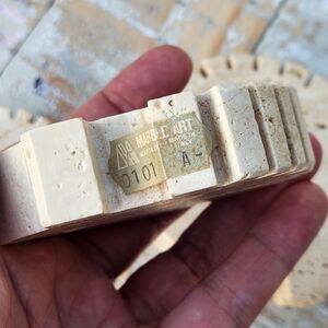 Perfect for collectors of iconic Italian marble art or lovers of minimalist natural stone decor. Each piece retains beautiful natural pits and surface variation characteristic of travertine. Original Marble Art sticker intact on one piece.