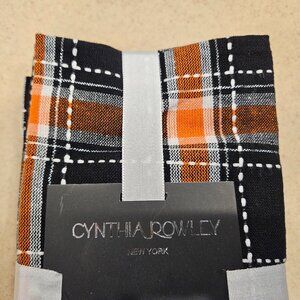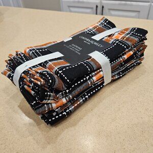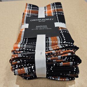 This is a set of 8 BRAND NEW Cynthia Rowley dinner napkins. These napkins are GORGEOUS addition to any table! They are done in a LOVELY plaid print in orange, black and accents of white. This is 95% cotton and 5% metallic fiber. They are BRAND NEW in the packaging and have NEVER BEEN USED nor NEVER DISPLAYED. Come from a non-smoking home. Each napkin measures approximately 20" by 20". Pictures of actual item.