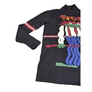 RARE 90s Ms AND Dn Frog Sweater Vintage Kawaii Mock Neck Cartoon Knit Japan UNI