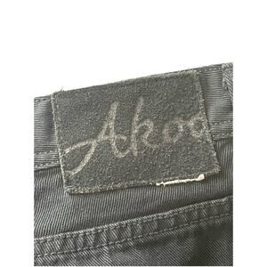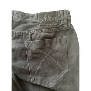 This is a pair of rare AKOO black denim jeans in size 44 with a 33-inch inseam. They are made of 100% authentic denim and have a classic, straight leg style. The jeans are from the AKOOCLOTHING BY TI product line and are priced at $250.