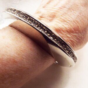 *RARE* ALEXIS BITTAR EARTHQUAKE ANGLED SILVER W/CRYSTAL CLAMPER CUFF BRACELET 29