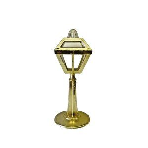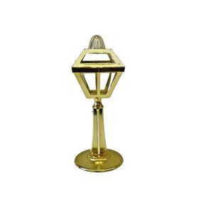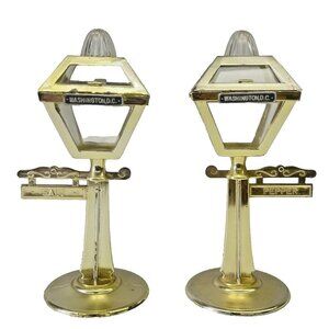 This rare antique salt and pepper shaker set features a unique design inspired by Washington, DC streetlights from the 1940s, 50s, and 60s. The shakers are shaped like streetlights and are made of plastic with a gold tone color, adding a touch of novelty to any dining table. This set includes a salt and pepper shaker and is perfect for all occasions, making it a charming addition to any collection of kitchen tools and gadgets or as a decorative piece for collectors of unique items.