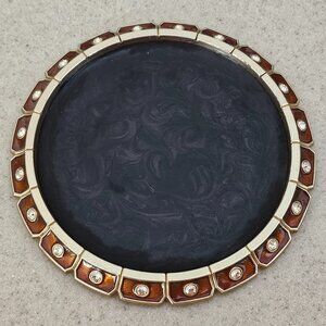 This is an AUTHENTIC Vintage Jay Strongwater Jungle Drink Coaster. This was purchased from Neiman Marcus. This is from the RETIRED Jungle collection. The coaster is accented with a crystal edge. The pattern is done in an enamel. The metal has a gold finish and accented with Swarovski crystals. The round coaster measures approximately 4 3/4"W (from left to right.) It measures 3 7/8" W (from left to right on the interior of the coaster. it has a felt bottom and the Jay Strongwater logo in the center. This is pre-owned and has been used. It comes from a non-smoking home. There are no missing crystals. There is significant wear to the enamel finish...particularly, in the center...there is wear and scratches. The enamel is matte and there is no shiny topcoat...you can see wear and marks in the center...see pictures. Pictures of actual item.
