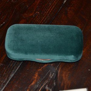 This is an AUTHENTIC GUCCI GREEN VELVET EYEGLASSES SUNGLASSES CASE, OUTER BAG, and CLOTH. GORGEOUS design with CLASSIC interior. The inside of the case has the Gucci logo. It originally came from Sak's Fifth Avenue. The case measures approximately 6 1/2"W (left to right) by 3 1/4"L (at longest part... top to bottom) by 1"H (at the front of the case) x 1 1/4" deep (at the deepest part on the backside of the case.) It has the original Gucci cleaning cloth. Pictures of actual item. Comes from a non-smoking home.