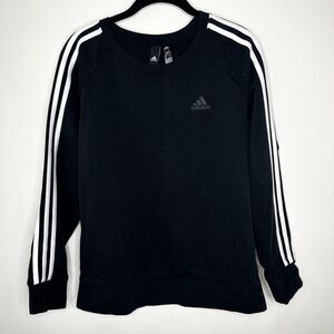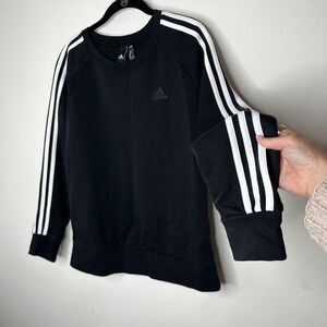 Adidas rare Black logo with White 3-Stripe Fleece Crew Neck Long Sleeve Sweater Ribbed Cuffs & Hem