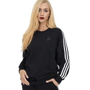 Elevate your casual look, this fleece sweater provides warmth and comfort throughout the day. The ribbed cuffs and hem ensure a secure fit, while the timeless black color adds a versatile touch to your outfit. With its Adidas classic 3-stripe design on the sleeves, this sweater effortlessly combines sporty style with everyday wearability.