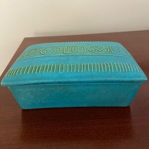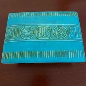 Gorgeous turquoise color with green accents on the relief that looks Egyptian.