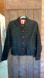 My lighting is horrible… this is a black felted jacket with white stitching w/ silver zippers