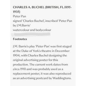 Antique Peter Pan by Charles Buchel Fine Art Colored Lithograph framed