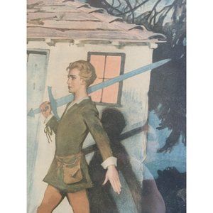 RARE Antique Peter Pan by Charles Buchel Fine Art Colored Lithograph framed