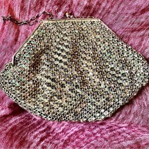RARE Antique Rhinestone Mesh Kiss Lock Purse Evening Bag Wristlet Clutch