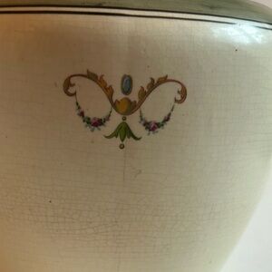 This planter/vase is truly magnificent. At more than 110 years old, there are no chips or cracks - see photos. It does have the most delicious dark crazing, which I think adds to the piece. Inside at the base of the vase is some staining/discoloration. Measures 9” x 7 1/2”.