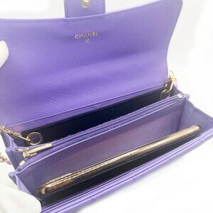 RARE Authentic CHANEL CC Timeless Caviar Flap Wallet Chain Purse Purple Bag