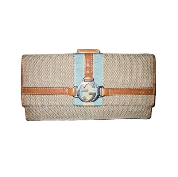 RARE Authentic Gucci Amalfi Beige and Brown Cloth Wallet with Silver Accent EUC