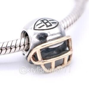 RARE Authentic PANDORA Sterling Silver Engraved Cleveland Browns NFL Logo with 14K gold Bead, S 925 ALE Stamp