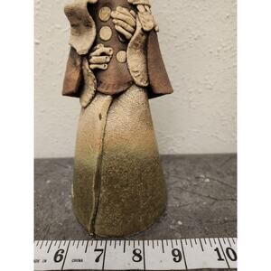 This unique sculpture bell is a rare find for any collector of vintage pottery. Crafted by the renowned Rex Benson Pottery, this original piece features an eclectic style that is sure to add a touch of character to any space. The brown and tan color of the clay material perfectly complements the theme of the bell, making it a great addition to any decorative pottery and glassware collection.