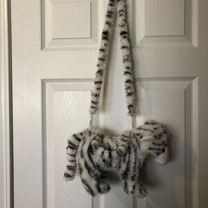 RARE BJ Toys Snow Leopard Purse Shoulder & Hand Straps Zippered Pocket 4" Deep