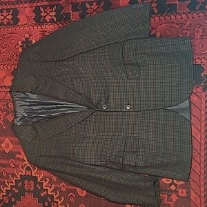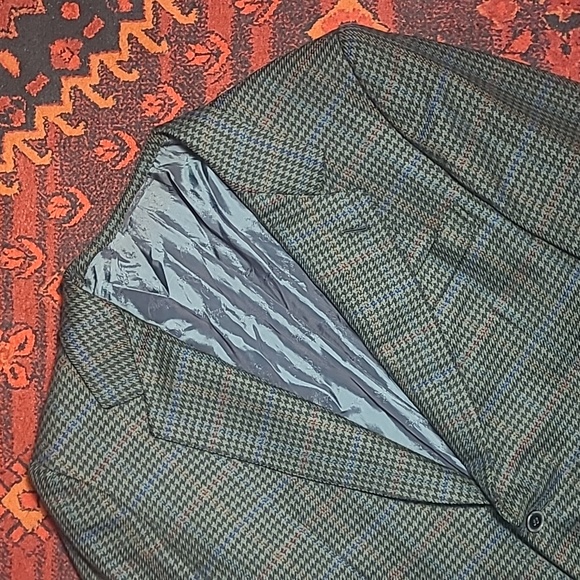 Luxury Houndstooth Multicolored Brioni Sport Coat Blazer. Unique combination of green and black houndstooth with purple, blue, orange, and red stripes. Size 42R US/ 52 EU. More measurements are listed below. 100% Wool. Made in Italy.