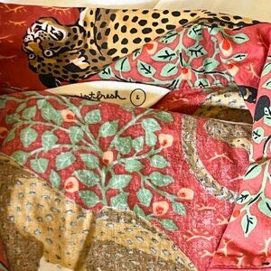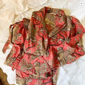 Enjoy relaxation with the perfect pj combo. Made in 100% cotton poplin and hand screen printed in the sold out, and archived Bagheera Scarlet print (featuring leopards). And there are pockets!!! Size Large (US 12 - 14) Crafted from 100% organic cotton poplin. Rejoice for sleepwear that gets softer with every cycle. Pants feature POCKETS! Mid rise with elastic waistband and drawstring pants, featuring 28" inseam. Relaxed fit that’s roomy & chic all at the same time.