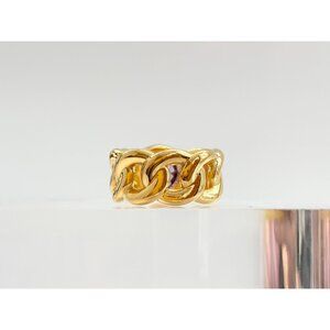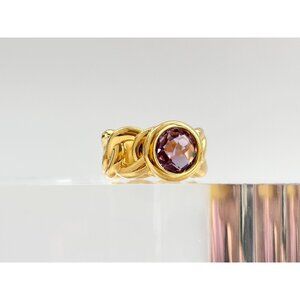 RARE Bella Oro Milor 14k Gold Overlay Resin Amethyst Chainlink Vintage Ring sz 9