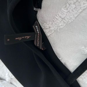 RARE * Black BCBG Bodycon one shoulder Blk Dress w/ belt Sz S