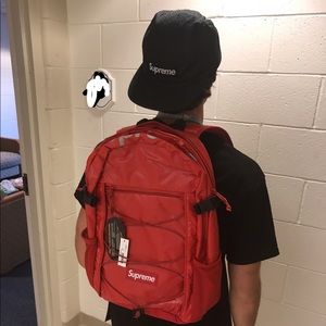 SUPREME Black pinstriped hat, SOLD OUT, released today, with adjustable strap in the back to fit any sized head, only 1 in stock! Turn heads with the limited edition NEW SUPREME Merch!