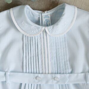 RARE Blue Heirloom PinTucked Button Belted Creeper Feltman Brothers 3 Months NEW