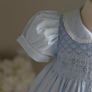 RARE Blue Smocked Dress Heirloom Feltman Brothers PERFECT CONDITION Like New
