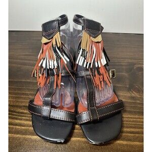 *RARE* Brian Atwood Fabia Flats Colorful Fringe Strappy Aztec Sandals Women 9.5