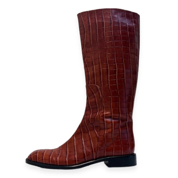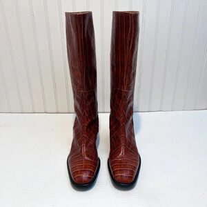 RARE Brock Collection Croc-Effect Cognac Brown Leather Western Bohemian Classic Designer Riding Boots 40